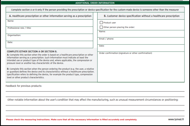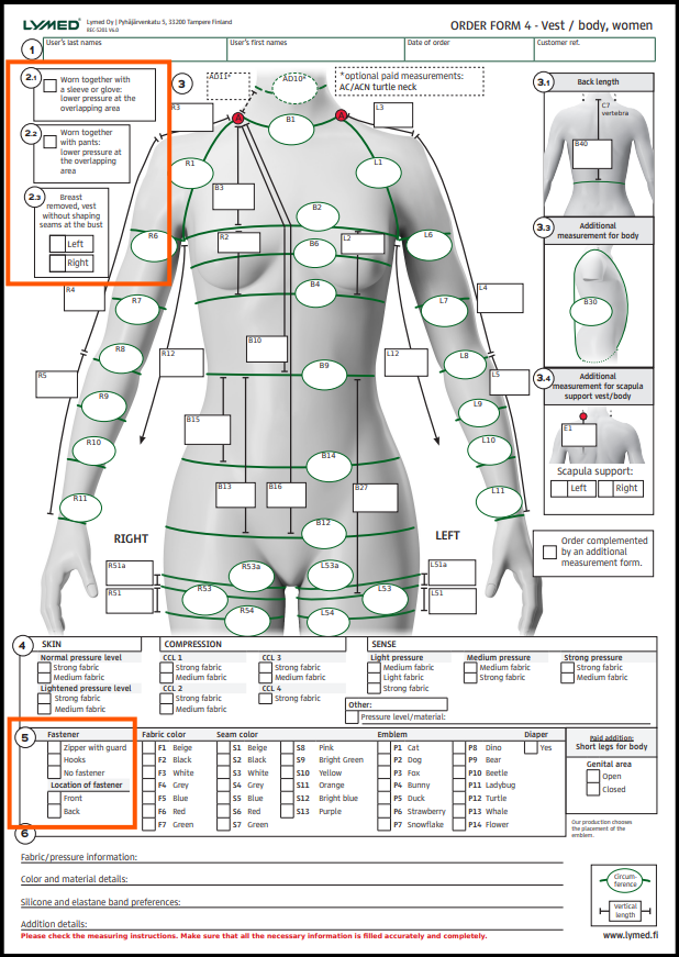 The Lymed order forms are the medium we use to create fully individualized medical pressure garments for your clients! This is why it is so important to fill it out carefully. Please make sure to download and start using the new forms right away!
